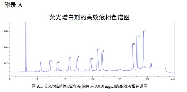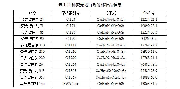本方法規定了食用菌、大米、小麥粉和小麥粉制品、淀粉和淀粉制品中11種二苯乙烯類陰離子型熒光增白劑的高效液相色譜測定方法。11種熒光增白劑包括熒光增白劑24、熒光增白劑71、熒光增白劑85、熒光增白劑90、熒光增白劑113、熒光增白劑210、熒光增白劑220、熒光增白劑264、熒光增白劑353、熒光增白劑357、熒光增白劑5bm。