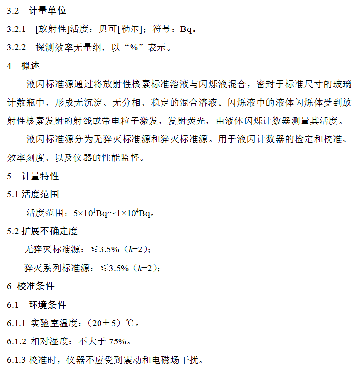 《液閃標準源校準規范》(征求意見稿)適用于活度范圍為5×101Bq~1×104Bq液閃標準源的校準,液閃標準源包括無猝滅標準源以及猝滅系列標準源。