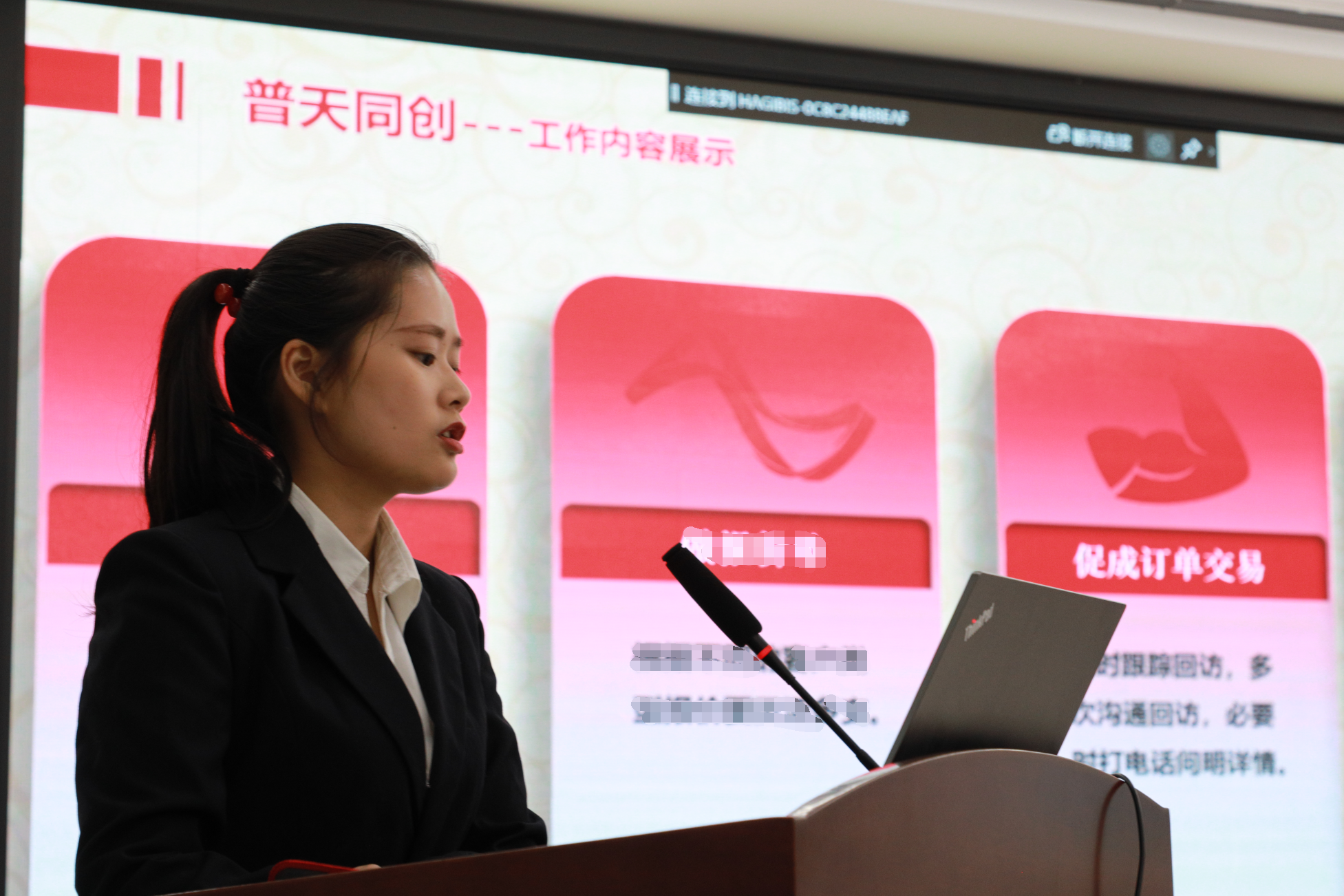 最后進行分享的是有著豐富經驗的業務凡永菲,指出機會往往會喬裝成麻煩讓人無法抓住,在躲避這些“麻煩”的時候我們也就錯失了機遇,提出員工應跟隨公司腳步,循序漸進,邁步走向美好的前景。