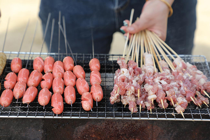 滋啦滋啦冒著汁兒的烤肉、咕嘟咕嘟的柴火雞、花樣繁多的蔬菜和肉串,隨著春風的光顧,總是不時傳來讓人垂涎欲滴的香味,大家已經迫不及待地想要品嘗這些美味了。酒足飯飽之后,娛樂活動更是不可少的,撲克牌、蕩秋千、平衡木,各種各樣的娛樂設施上都有大家的身影,一片歡聲笑語中,美好的一天就度過了。