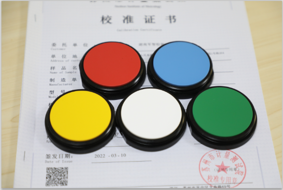 標準色板的材質為陶瓷質地,5塊/套,顏色為:白、紅、綠、藍、黃。